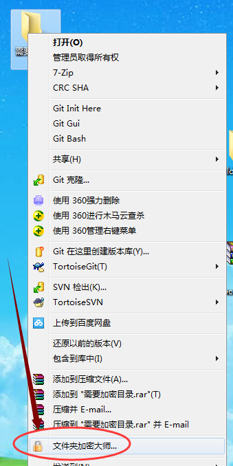我们安装服务成功后可以鼠标右键点击文件夹,会在菜单里出现文件夹加密选项!